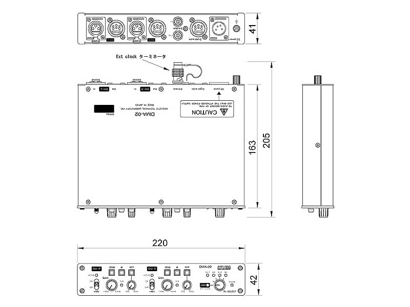 アナログ2チャンネル入力/2チャンネル出力のほかに、高性能A/DコンバータによるAES/EBU デジタル出力も搭載していますので、デジタルミキシングコンソールのヘッドアンプとして使用した場合にも高品位な音色が得られます。内部のデジタル信号処理は24bitで、サンプリング周波数は44.1KHz/48KHz/88.2KHz/96KHzが選択可能です。またワードクロック入力にも対応していますので、複数台のDMA-02を同期する運用こともできます。