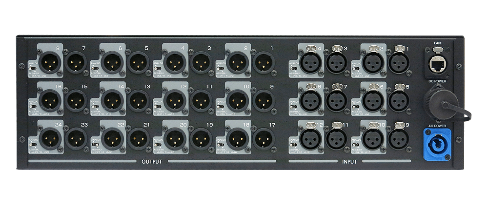 - 入出力はXLRコネクター(全チャンネルに アナログ or AES/EBU切替スイッチ)